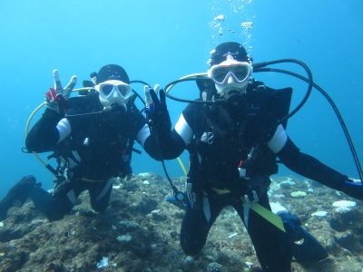 雨予報が出ている中、晴天に恵まれ貸切ダイビングを楽しみました。